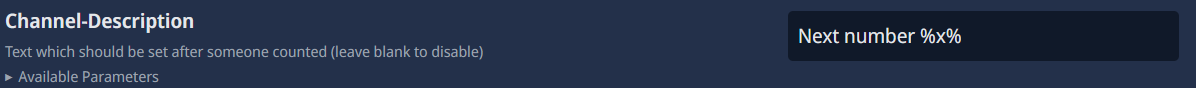 Here, you can enter a description for the counting channel. This description will be displayed in the channel description, this is recommended because you can work with variables, you can use the following placeholders if you want: