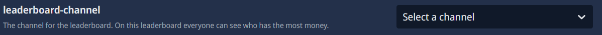Here, you can select a channel where the economy leaderboard will be displayed. The bot will automatically update the leaderboard in this channel. If you don't want to use this feature, you can leave this field empty.