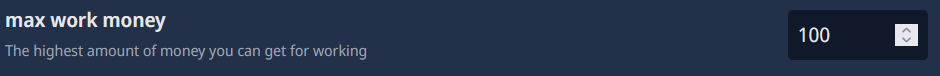 This option allows you to set the maximum amount of money that users can earn from working. You can set this to any amount you like, depending on how you want to structure your economy.