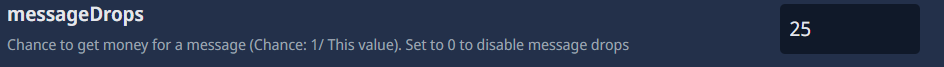 Here, you can set the amount of money that users can earn from message drops. You can set this to any amount you like, depending on how you want to structure your economy.